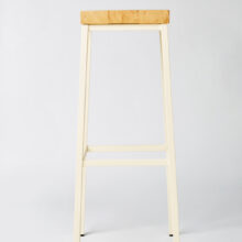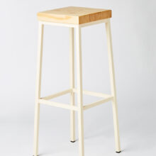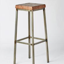Stool of straight lines, in steel and thick pine seat.